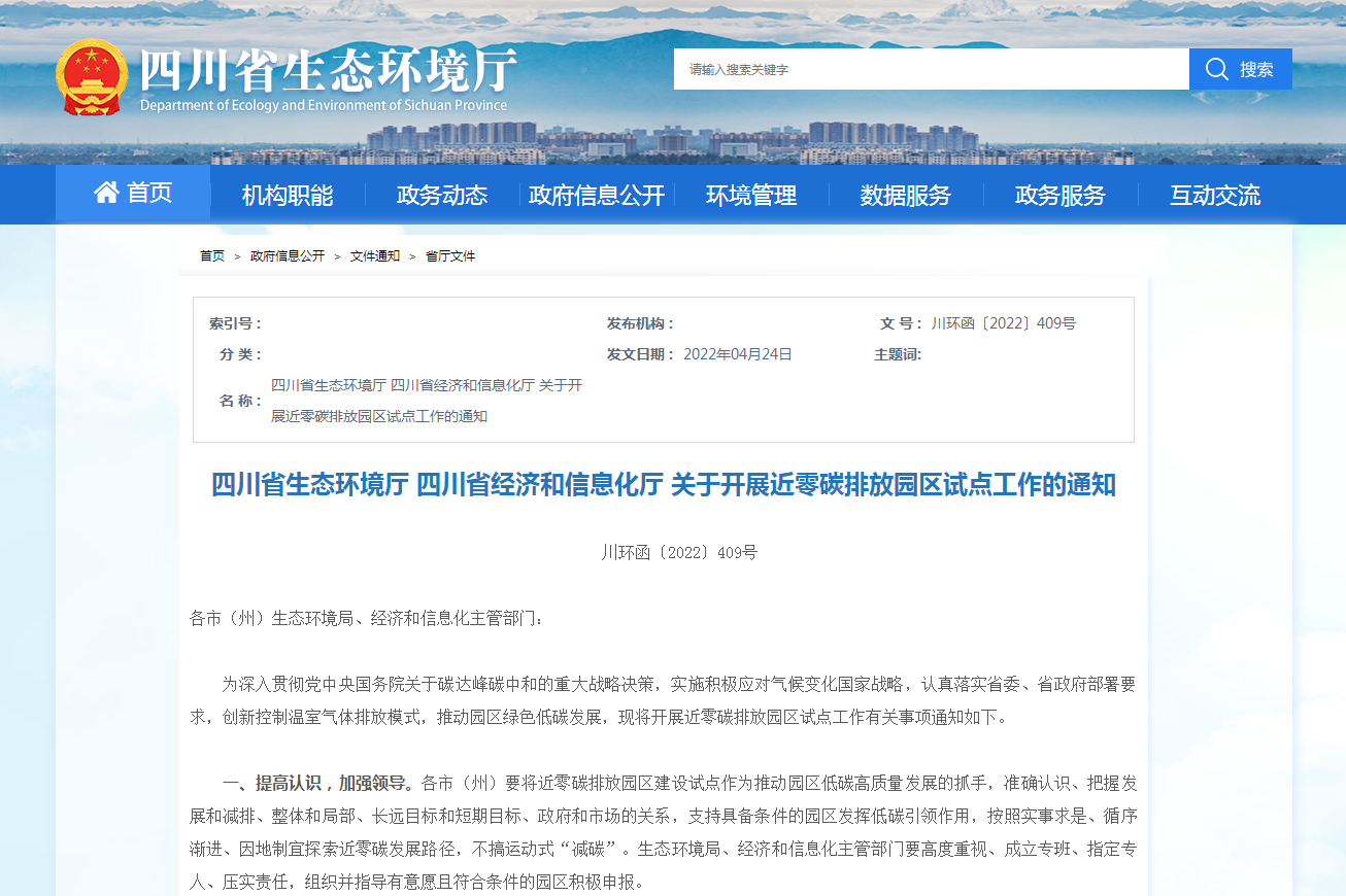 地方政策四川:2025年前建成約20個近零碳排放園區
