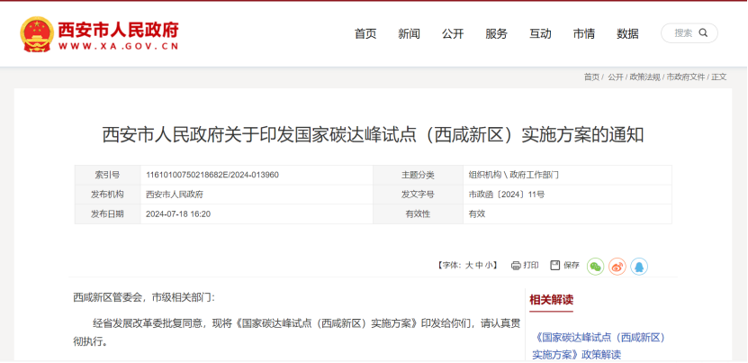 7月19日,西安市人民政府面向西咸新區(qū)管委會(huì),市級(jí)相關(guān)部門印發(fā)《國家碳達(dá)峰試點(diǎn)(西咸新區(qū))實(shí)施方案》,聚焦綠色低碳發(fā)展的能源和產(chǎn)業(yè)轉(zhuǎn)型瓶頸制約,加快提升能源清潔化利用效率、基礎(chǔ)設(shè)施綠色低碳化水平和減污降碳協(xié)同能力,全面推動(dòng)產(chǎn)業(yè)高質(zhì)量發(fā)展和資源循環(huán)利用。