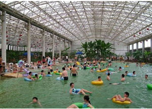 江蘇省洪澤縣老子山溫泉風(fēng)景 溫泉陽(yáng)光浴場(chǎng)展示出亮麗的南國(guó)風(fēng)情,分布大型泳池和品類各異的水療、魚療、花藥浴、泥巴浴,不僅具有神奇的理療保健作用,還兼?zhèn)渑哦攫B(yǎng)顏、美白肌膚、調(diào)理身心等多重功效,享有蘇北熱海、澤國(guó)仙境、華東首席溫泉度假區(qū)之美譽(yù)。