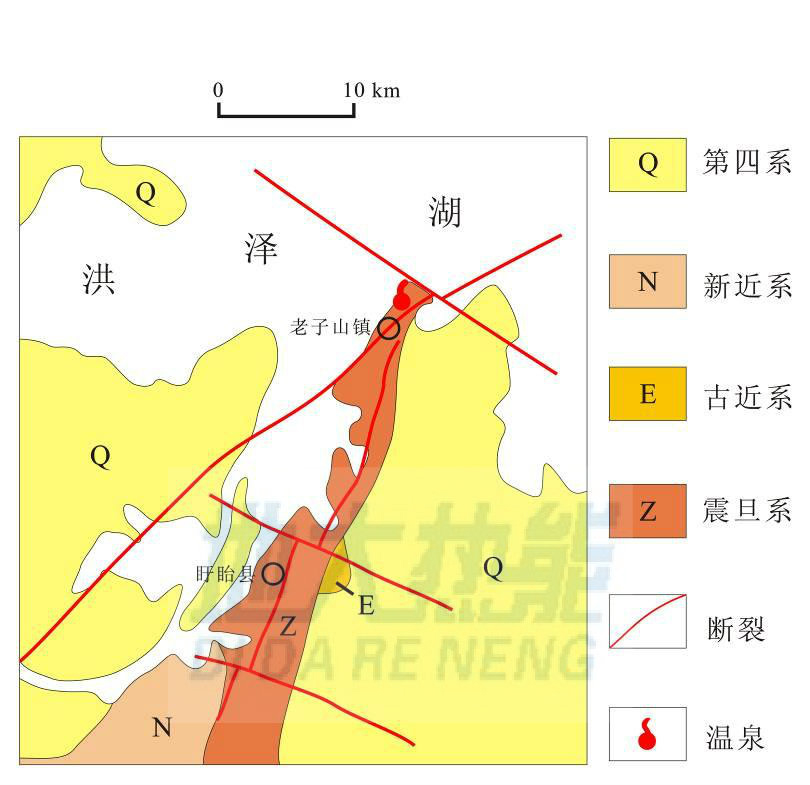 江蘇省洪澤縣老子山溫泉成礦機(jī)制![]() ![]() 江蘇省洪澤縣老子山溫泉區(qū)域地質(zhì)圖 |