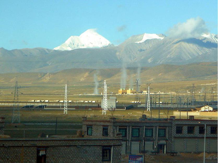 羊八井,即羊八井鎮(zhèn),位于西藏拉薩市西北91.8公里的當雄縣境內(nèi)。熱田地勢平坦,海拔4300米,南北兩側的山峰均在海拔5500~6000米以上,山峰發(fā)育著現(xiàn)代冰川,藏布曲河流經(jīng)熱田,河水溫度年平均為5℃,當?shù)啬昶骄鶜鉁?.5℃,大氣壓力年平均為0.06兆。附近一帶經(jīng)濟以牧業(yè)為主,兼有少量農(nóng)業(yè)。青藏、中尼兩條公路干線分別從熱田的東部和北部通過,交通尚為方便。