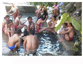云南躍進橋溫泉風景澡堂會的熱水最高達70-80度,由于是自然溫泉,含有多種礦物質和稀有金屬元素,對人體的某些疾患有特殊的療效,因而慕名前往洗浴的客人遠到西藏也不乏大有人在,只是現在的時間主要是周邊的人們,到三、四月份就會有更多遠方的西域者陸續到來。不少洗浴者一洗就是十天半月,更有甚者能洗兩到三個月,目的是治病,據說還真有不少人治好了疑難雜癥,不然的話怒江“澡堂會”怎么會在印度、尼泊爾、巴基斯坦、新加坡、馬來西亞甚至美國等地聞名遐邇。